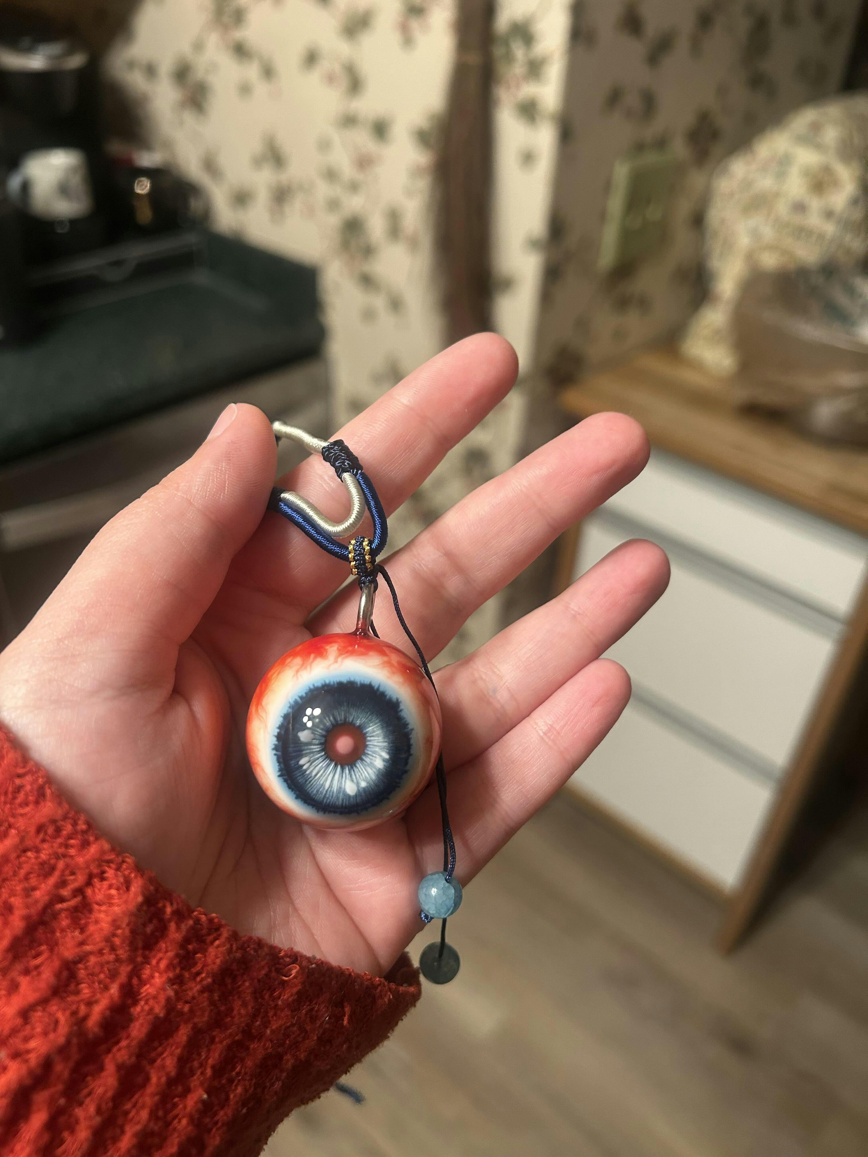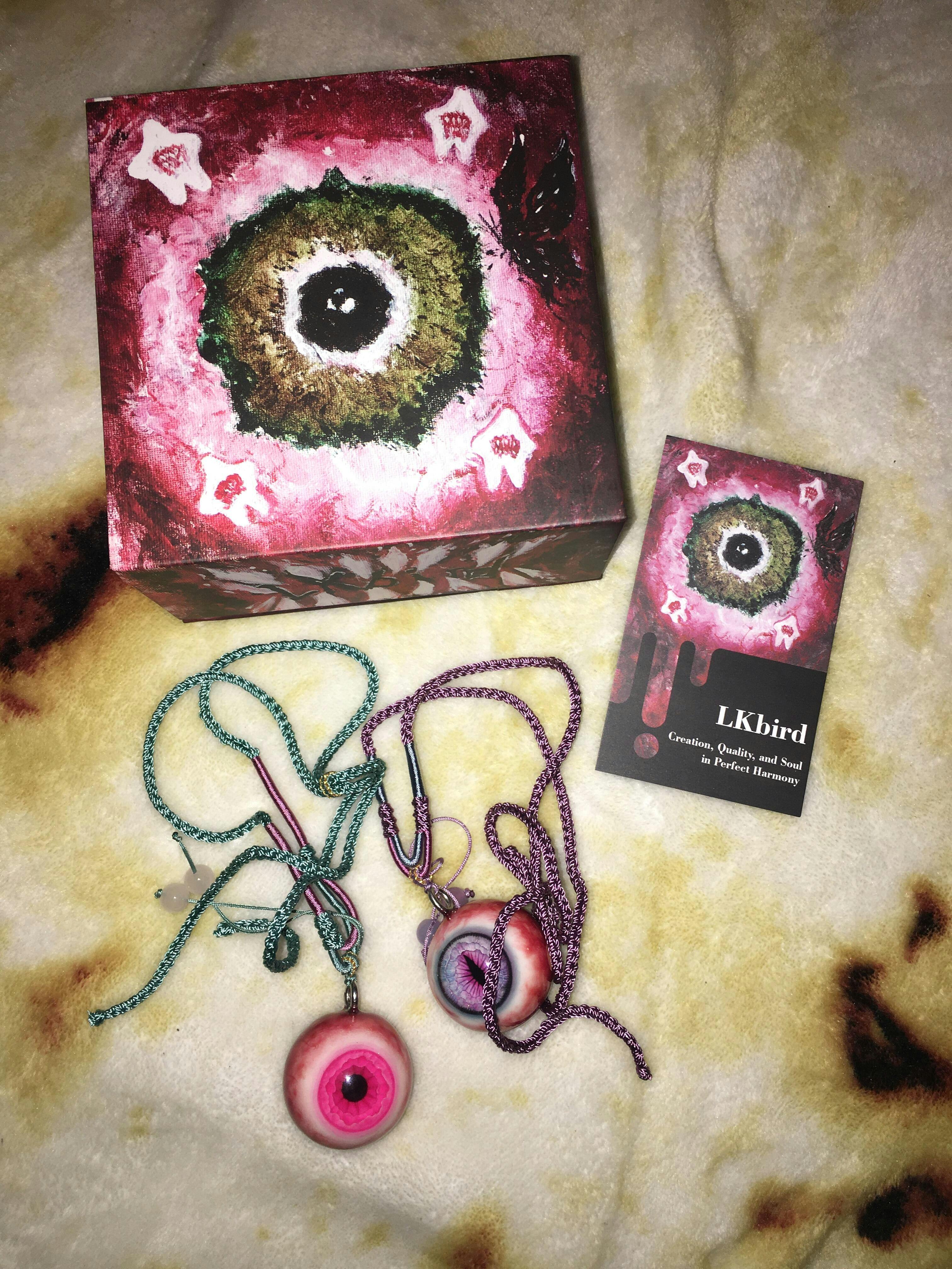 An artist from the UAE discovered our work on Instagram and was instantly captivated by the unique charm of our handmade eye pendants. She reached out to us and shared her stunning paintings and the vivid stories behind them.In the end, she chose to commission a one-of-a-kind eye pendant from LKbird. This pendant is mostly hand-painted, with an extra small eye cleverly painted inside the main pupil—showcasing our brand’s latest breakthrough in craftsmanship and design.This was more than just a custom order; it was a perfect blend of art and dedication.