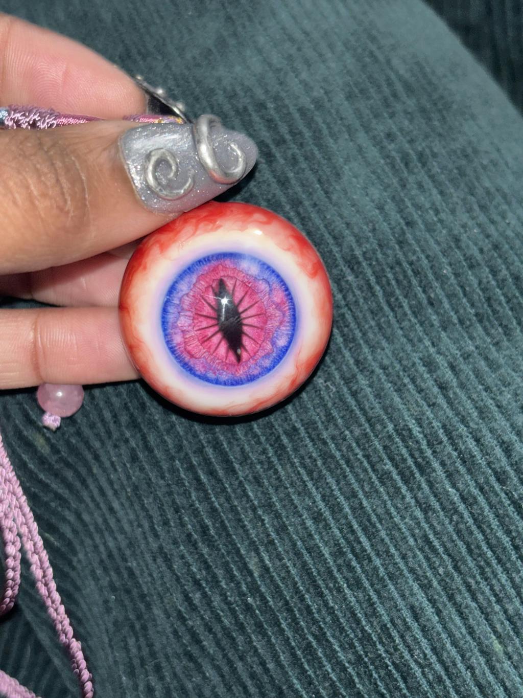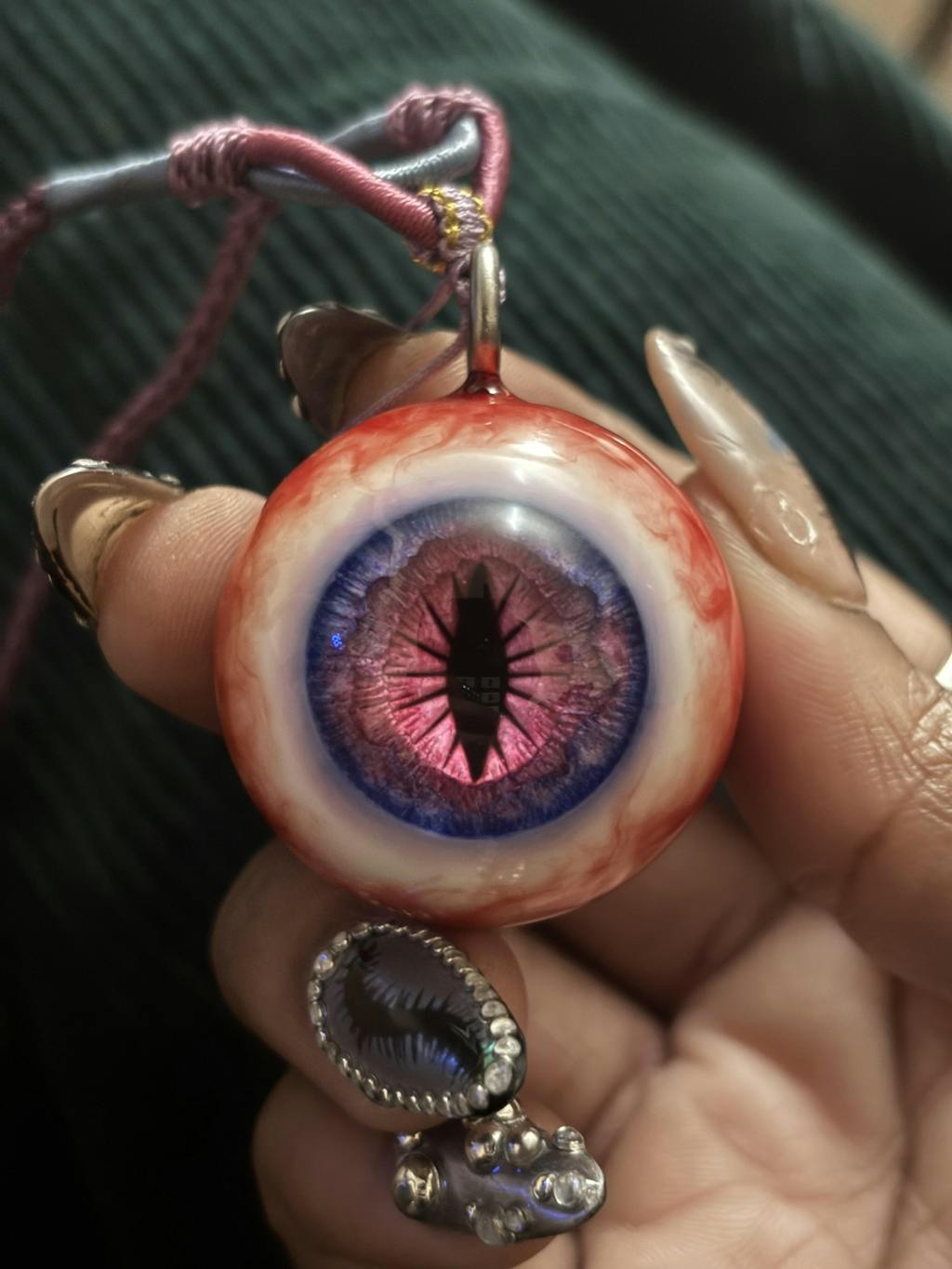 I own the hypnotoad looking eye necklace. We get a lot of compliments and second looks when we wear these, I love the work and artistry that are invested in each necklace.