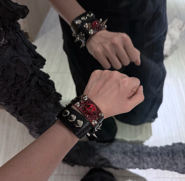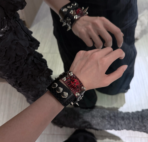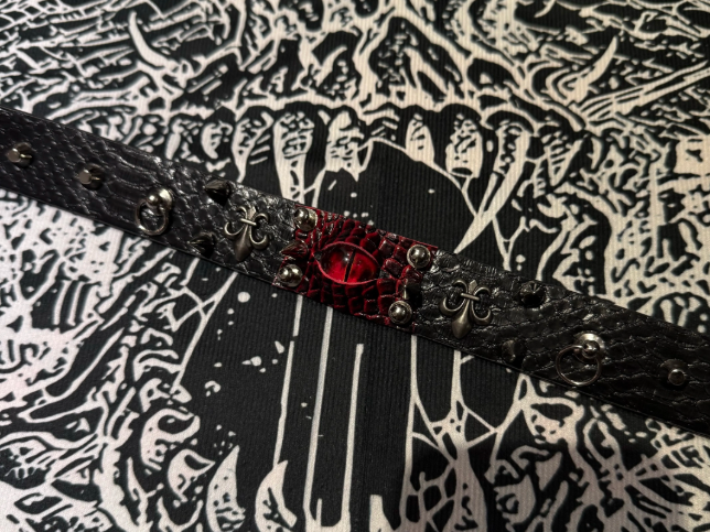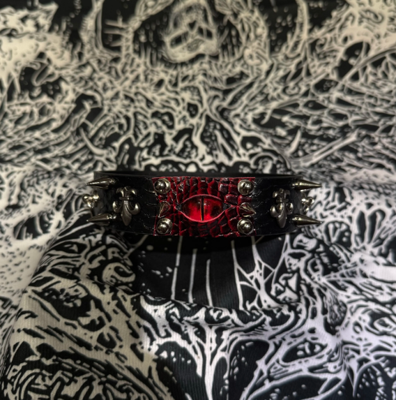Handcrafted Snake-Patterned Leather Choker with Red Snake-Patterned Leather Accents · Black and Red Choker