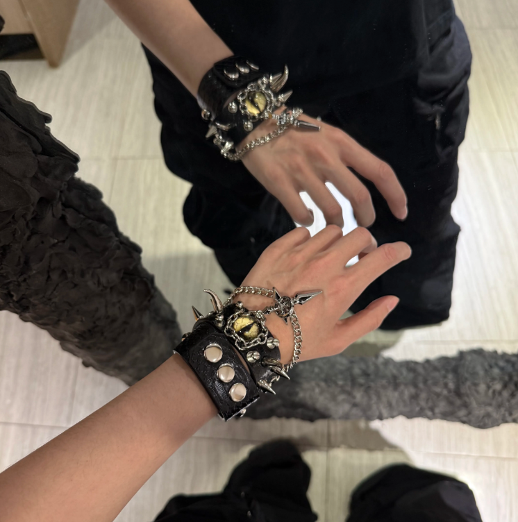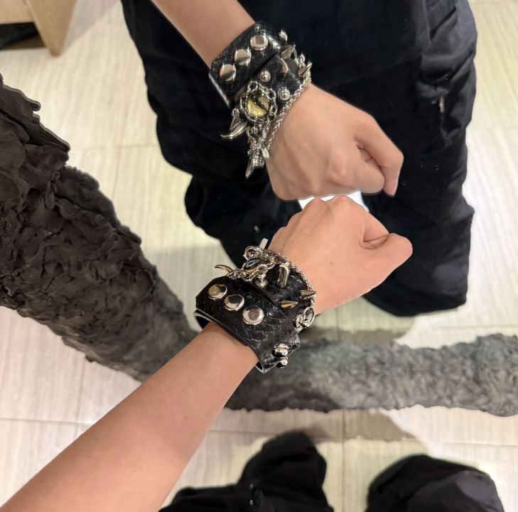 Handcrafted Snake-Patterned Leather Snake-Eye Subculture Punk Choker