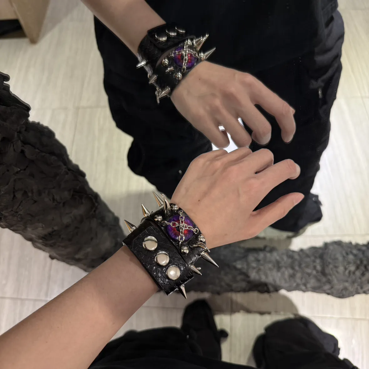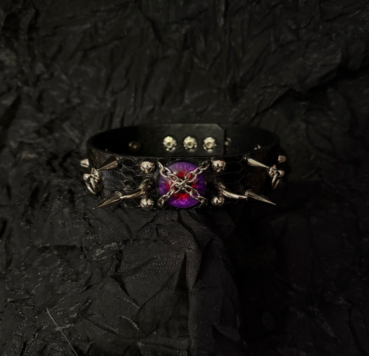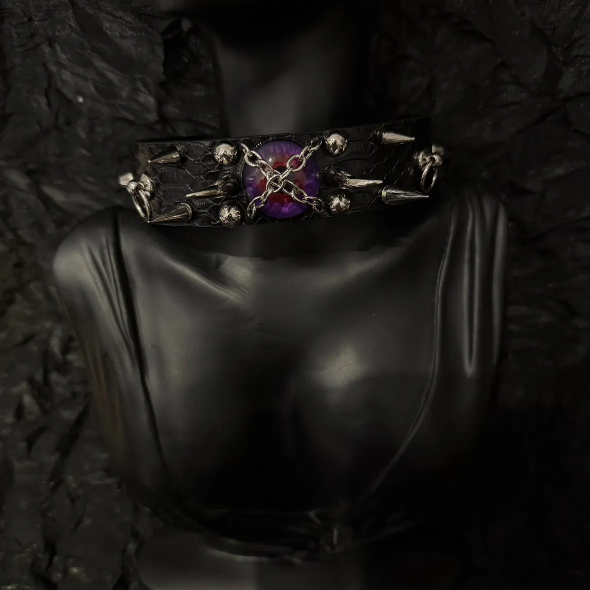 Handcrafted Snake-Patterned Purple-Eyed Subculture Punk Choker · Black Snake-Patterned Leather Choker