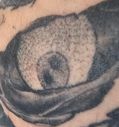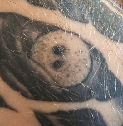 Black eye corners, orange-red veins, and yellow sclera — eye bracelet.