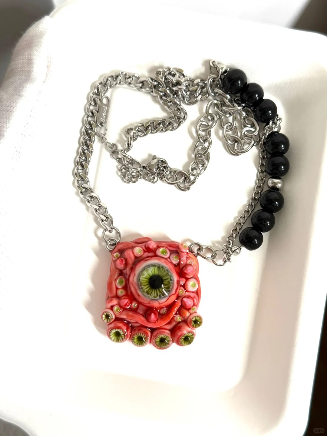 - 👁️Unique Design👁️: Each pendant showcases a single eye bead 👁️, carefully hand-sculpted and painted 🎨 to achieve a realistic, lifelike effect. Every detail—from the pupil to the iris and veins—is crafted with precision, making each piece one of a kind.