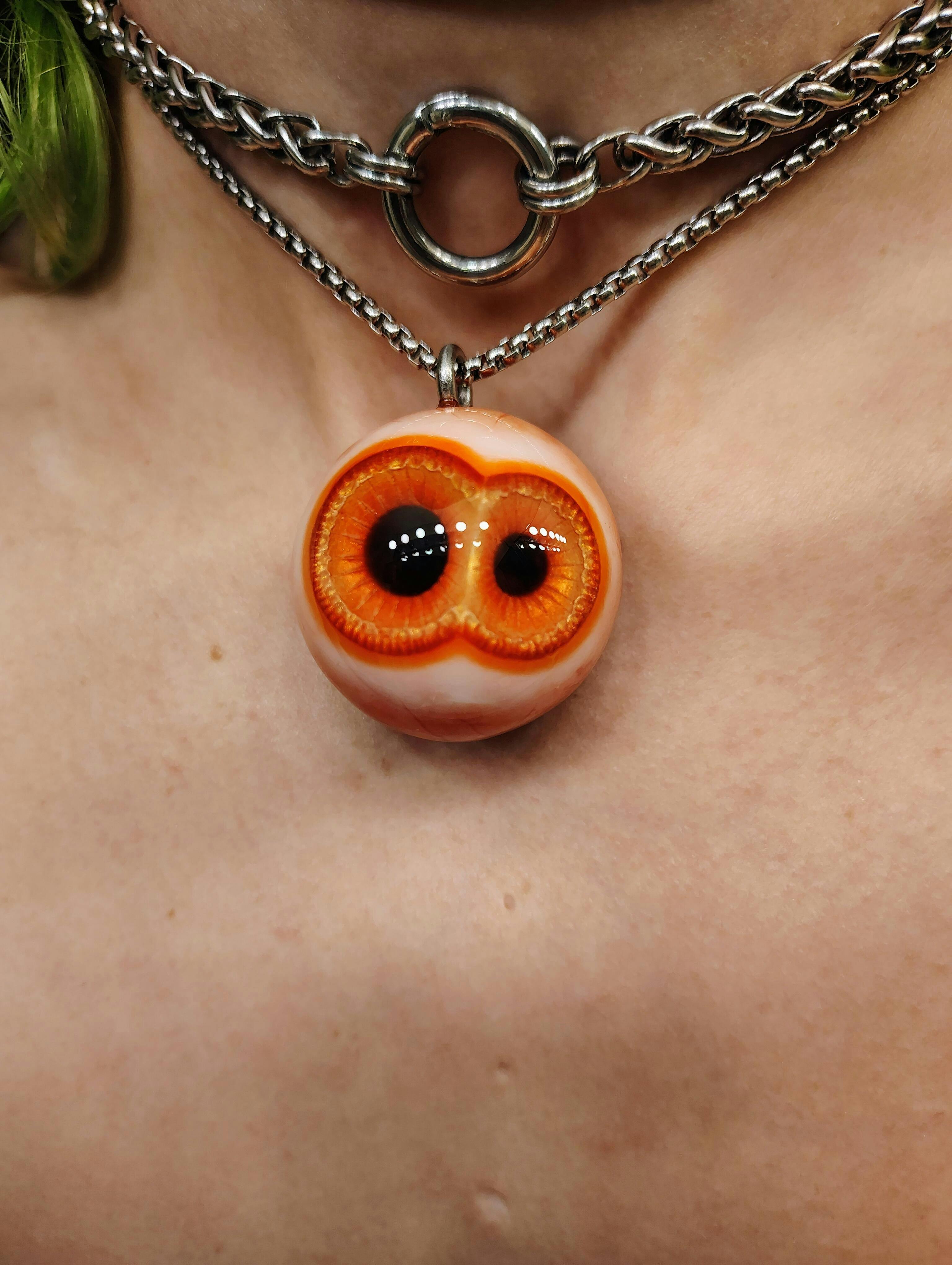 No longer listed on site, was originally the Split Orange-Yellow Twin Eye. Just incredible. It’s like two different pieces when in daylight/under shone light with its bright flashing iridescent details and varying warm hues, and in natural/inside light, the colors remind me of burning coal embers. Another otherworldly kind of outstanding piece <3 <3 <3